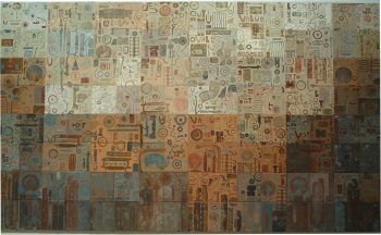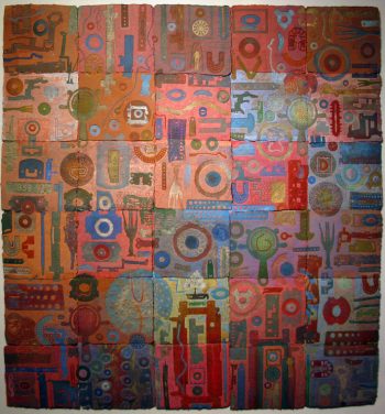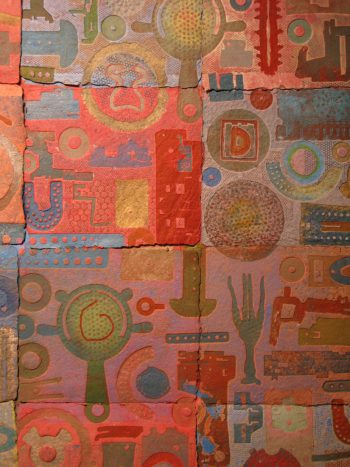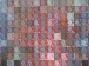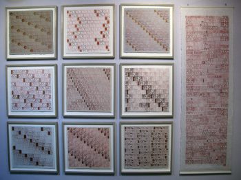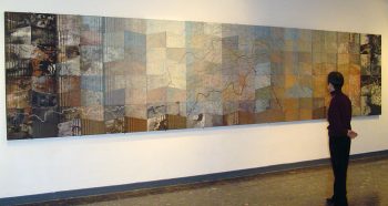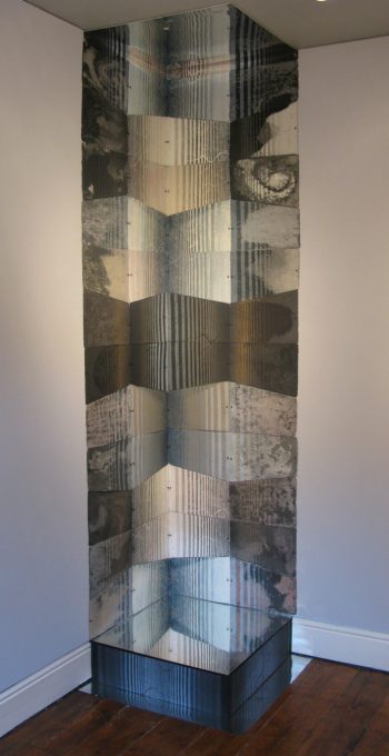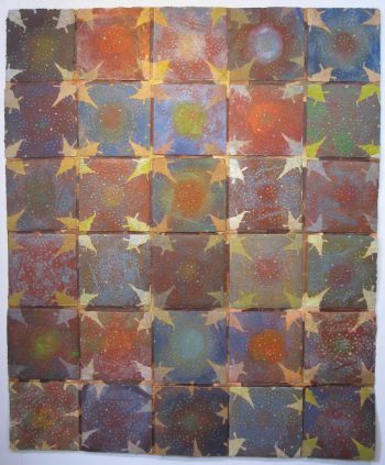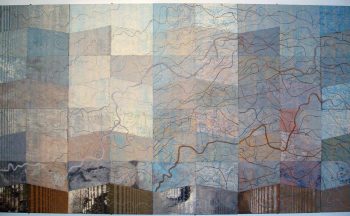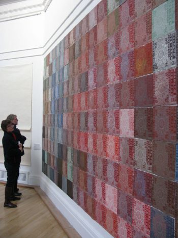Taking ‘larger’ to mean image dimensions above one metre and up to seven metres, most of the work shown is modular, and involves separate panels or pieces of my handmade paper joined together. For some artworks the construction allows them to be folded and posted.